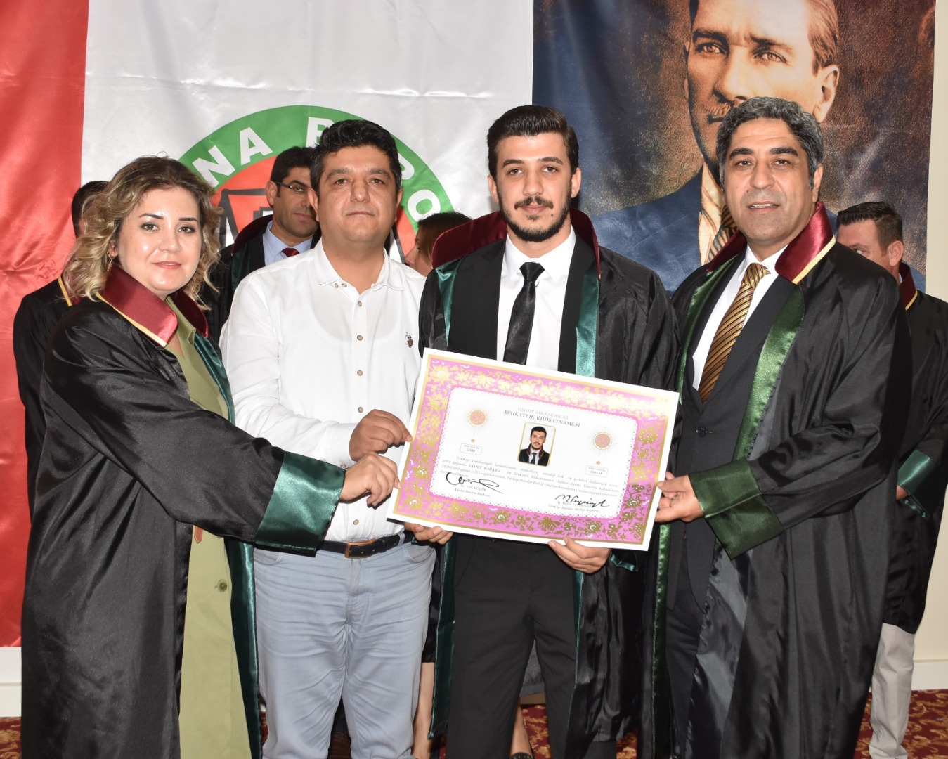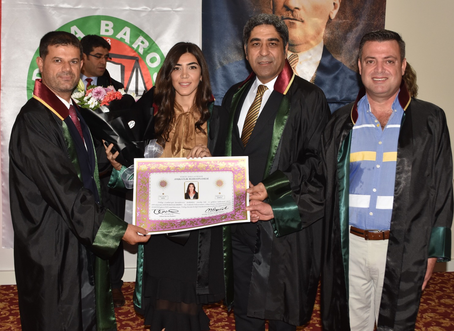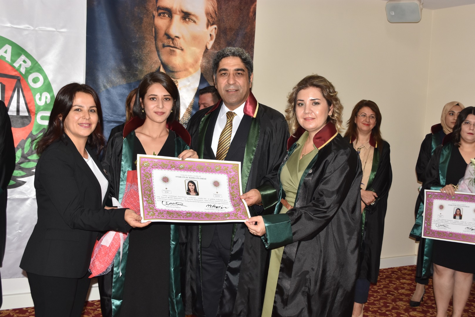 Genç meslektaşlarımıza cübbelerini: Av. Beyhan Tufan, Av. Fatih Kılıç, Av. Muhal İkikardeş, Av. Esma Öngüç, Av. Nazan Fulya Alisinanoğlu Seçer, Av. Fatih Kılıç, Av. Dilara Özuğur Kılıç, Av. Timur Ortatepe, Av. İlknur Önal, Av. Ömer Daşbaş, Av. Emir Ali emir, Av. Mustafa Onur Kutlay, Av. Hülya Ceylan Seçer, Av. Ömer Daşbaş, Av. Erdinç İpek, Av. şiyar Uğurlu, Av. Nuşin Gülşen, Av. Saadet Emir Yenmiş, Av. Hasan Berzan Toprak, Av. Uğur Türkmen, Av. Songül Aydoğan, Av. Serkan Kanğal, Av. Süleyman Kelebek, Av. Ahmet Kızıl ve Av. İsmail Demirdüzen, Av. İbrahim Emre Ediboğlu, Av. Bahadır Eraslan, Av. Murat Gülsün giydirdi..