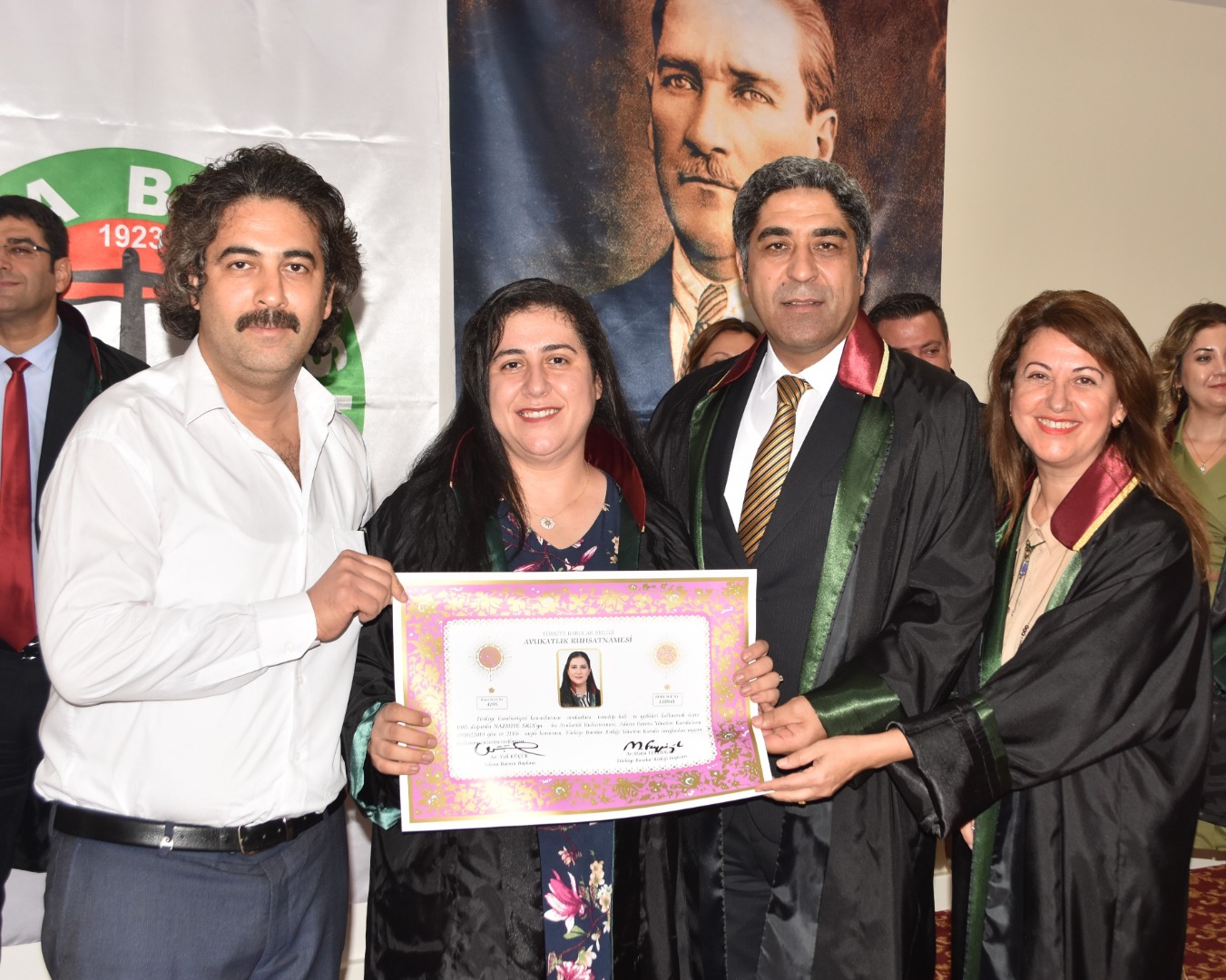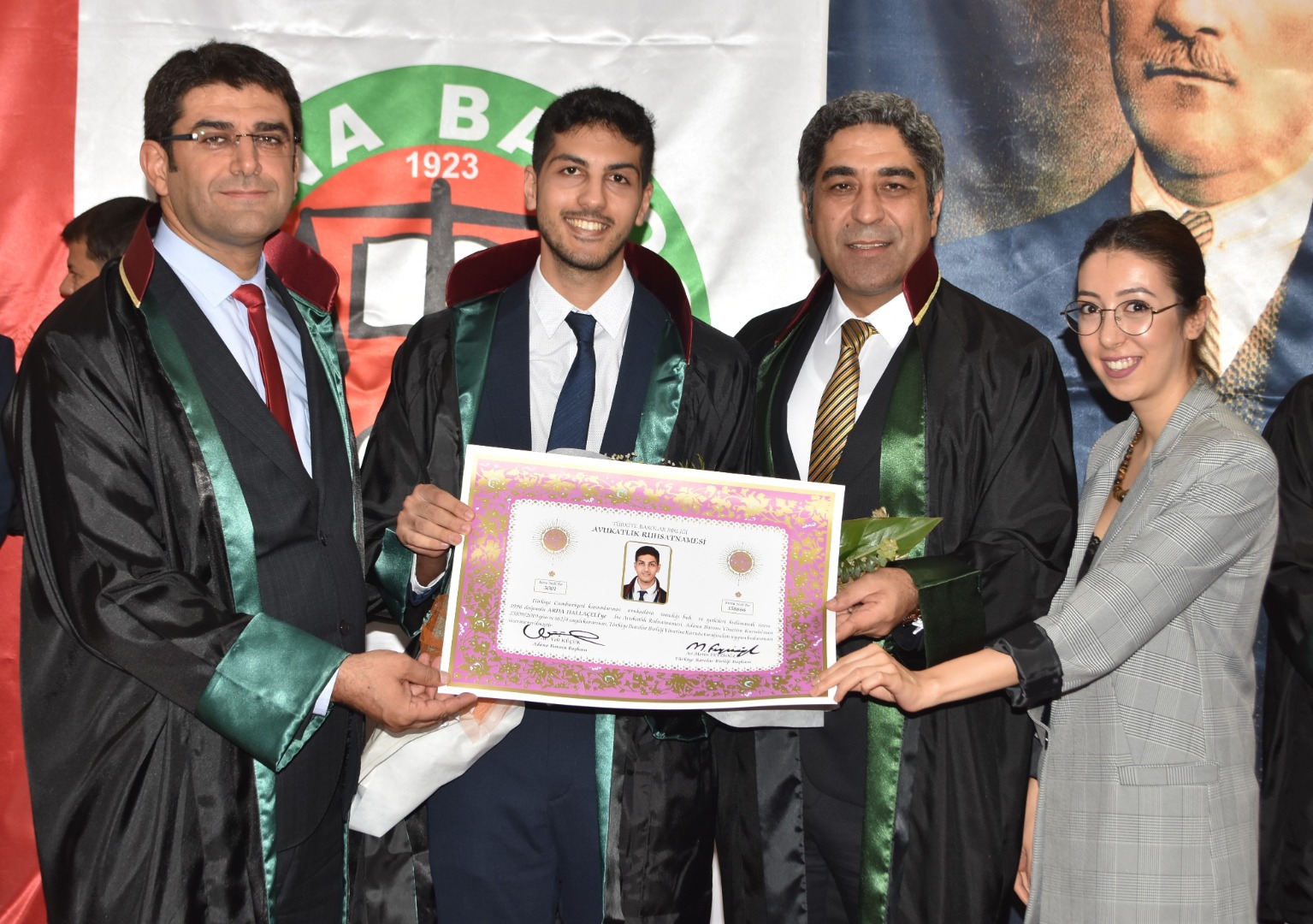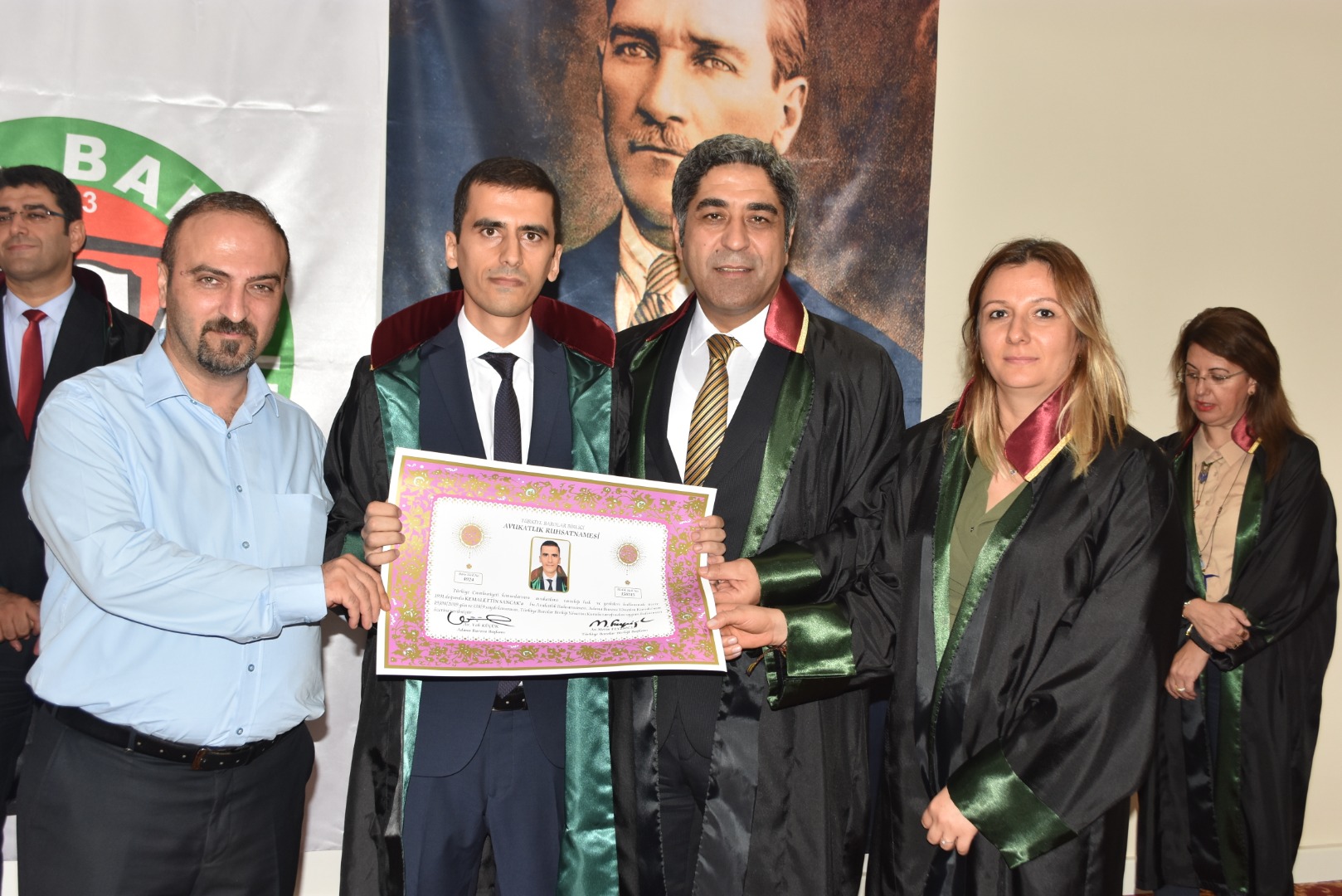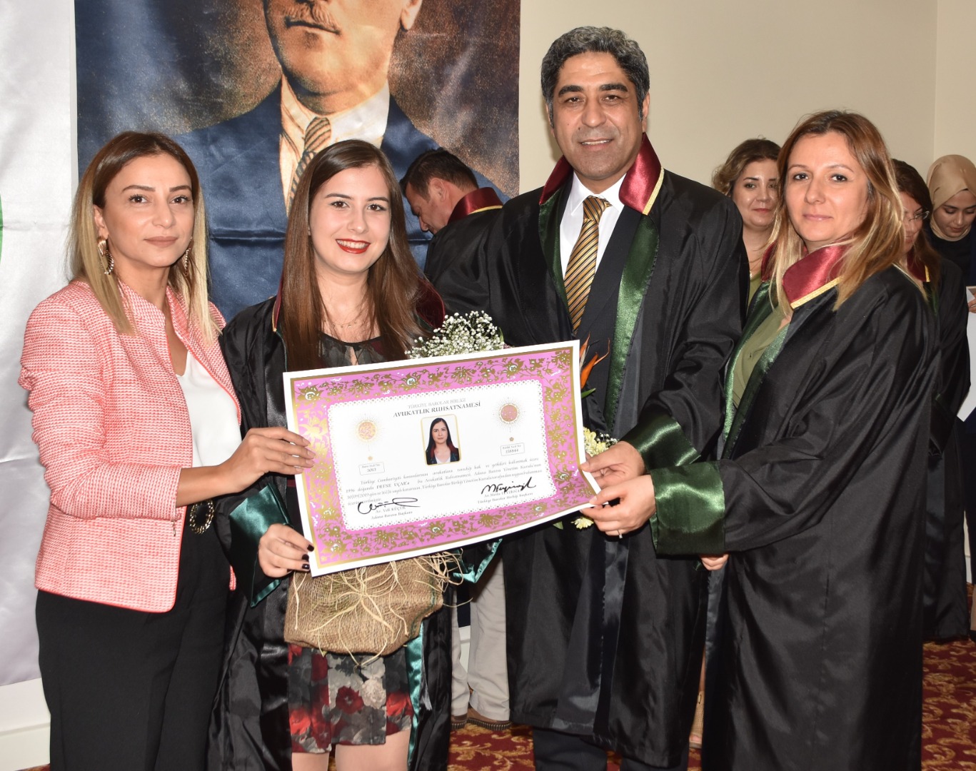 Genç meslektaşlarımıza cübbelerini: Av. Beyhan Tufan, Av. Fatih Kılıç, Av. Muhal İkikardeş, Av. Esma Öngüç, Av. Nazan Fulya Alisinanoğlu Seçer, Av. Fatih Kılıç, Av. Dilara Özuğur Kılıç, Av. Timur Ortatepe, Av. İlknur Önal, Av. Ömer Daşbaş, Av. Emir Ali emir, Av. Mustafa Onur Kutlay, Av. Hülya Ceylan Seçer, Av. Ömer Daşbaş, Av. Erdinç İpek, Av. şiyar Uğurlu, Av. Nuşin Gülşen, Av. Saadet Emir Yenmiş, Av. Hasan Berzan Toprak, Av. Uğur Türkmen, Av. Songül Aydoğan, Av. Serkan Kanğal, Av. Süleyman Kelebek, Av. Ahmet Kızıl ve Av. İsmail Demirdüzen, Av. İbrahim Emre Ediboğlu, Av. Bahadır Eraslan, Av. Murat Gülsün giydirdi..